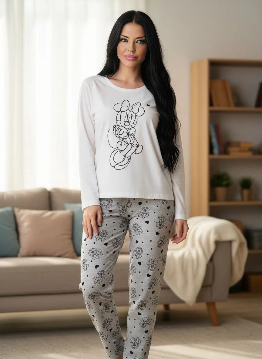 Βαμβακερή πιτζάμα με σχέδιο την minnie mouse στην μπλούζα και στο παντελόνι σε γκρί χρώμα.